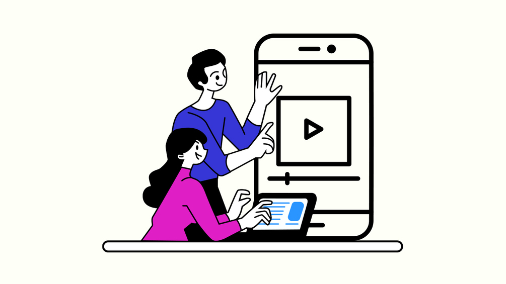Vector illustration showing team members working on app development. This illustration is created using a flat outline style. Each element in the design is an individual vector layer.