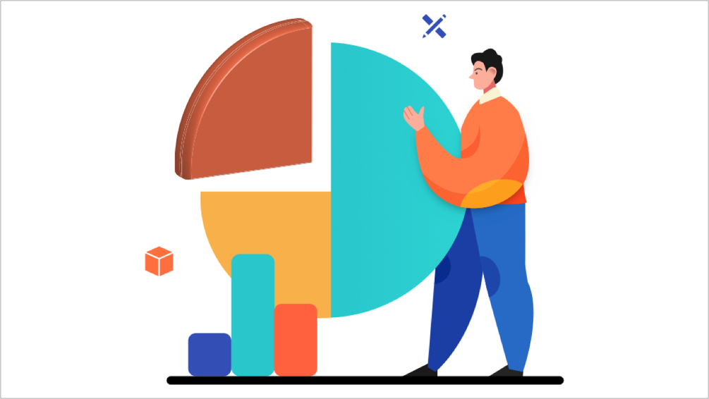 Vector illustration showing a man working with data for his presentation. Each element in the design is an individual vector layer.